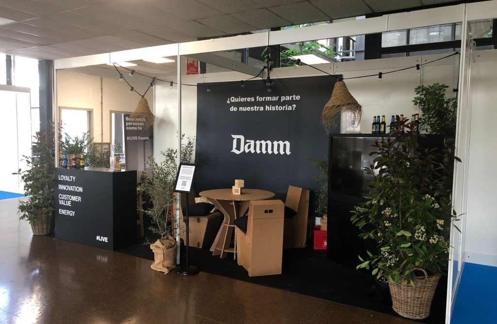 Espai principal de trobada entre empreses i estudiants durant el Forum ETSEIB. Cada empresa disposa d’un espai on pot presentar-se, exposar les seves oportunitats laborals i interactuar directament amb els futurs enginyers.